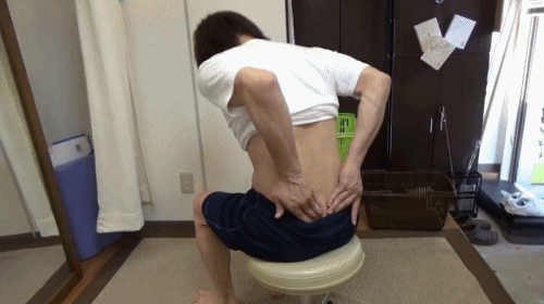 仙腸関節というクッションの役割をする重要な関節を前屈しながらさする