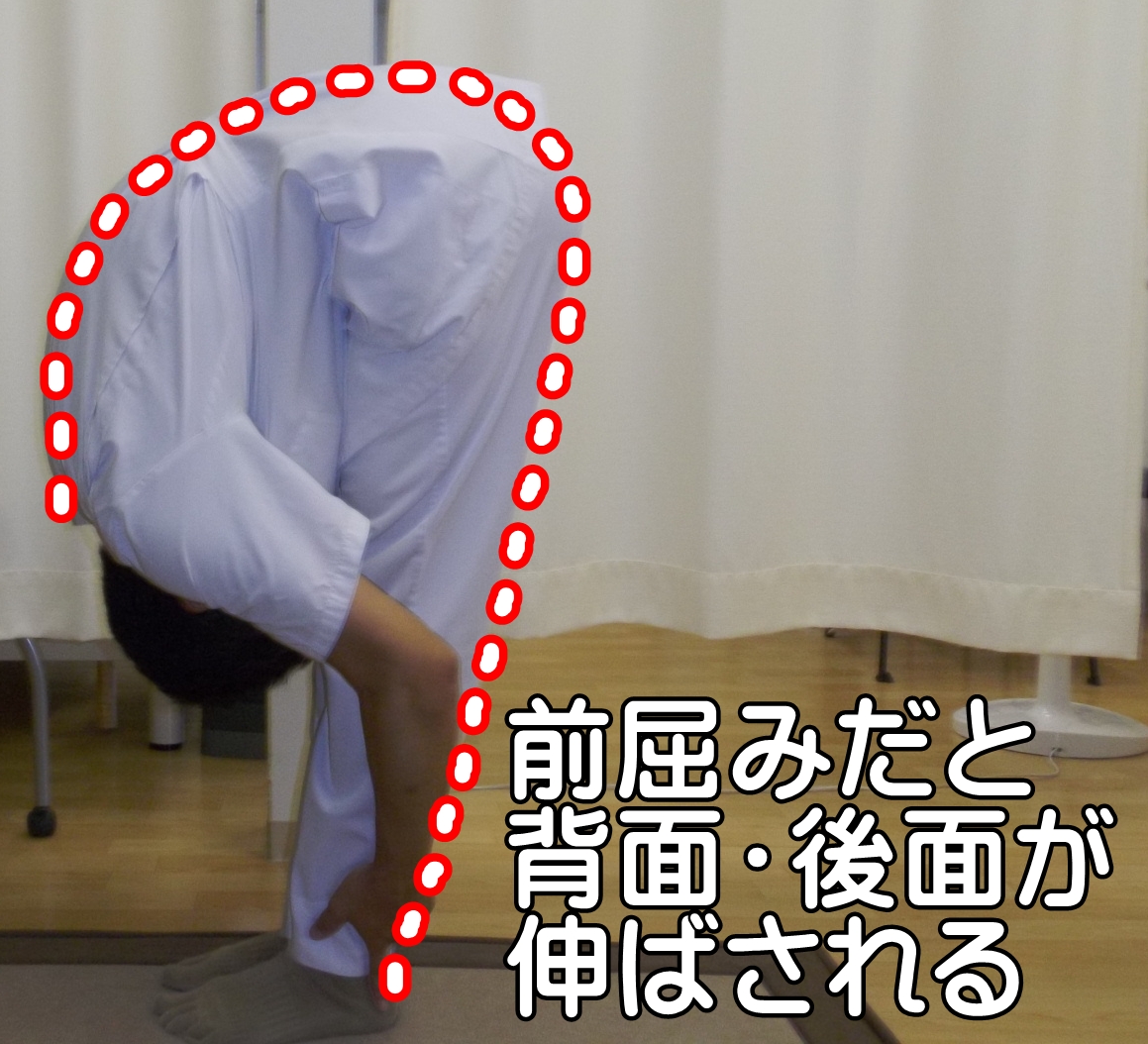 前屈みだと背面後面が伸ばされ緊張する